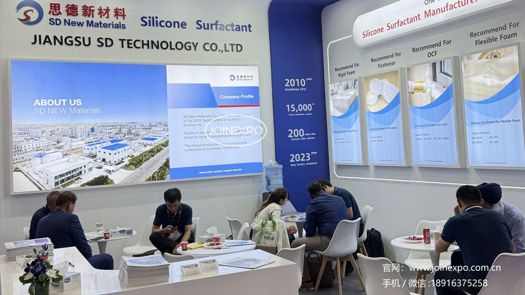 制品展區(qū)涵蓋聚氨酯泡沫(軟/硬)、聚氨酯彈性體、聚氨酯鞋底原液、組合料、聚氨酯革用樹脂、聚氨酯彈性纖維(氨綸)、聚氨酯粘合劑、密封膠等多種產(chǎn)品。