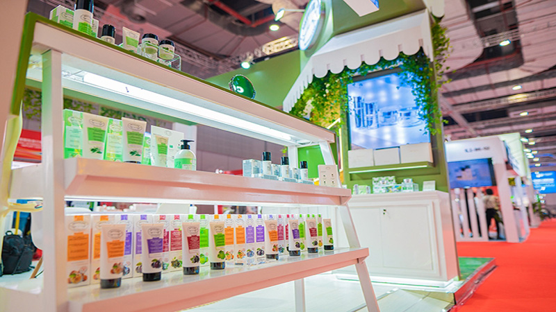 美妝護(hù)膚品牌的展臺設(shè)計(jì)搭建的確需要天然純凈的綠色氛圍
