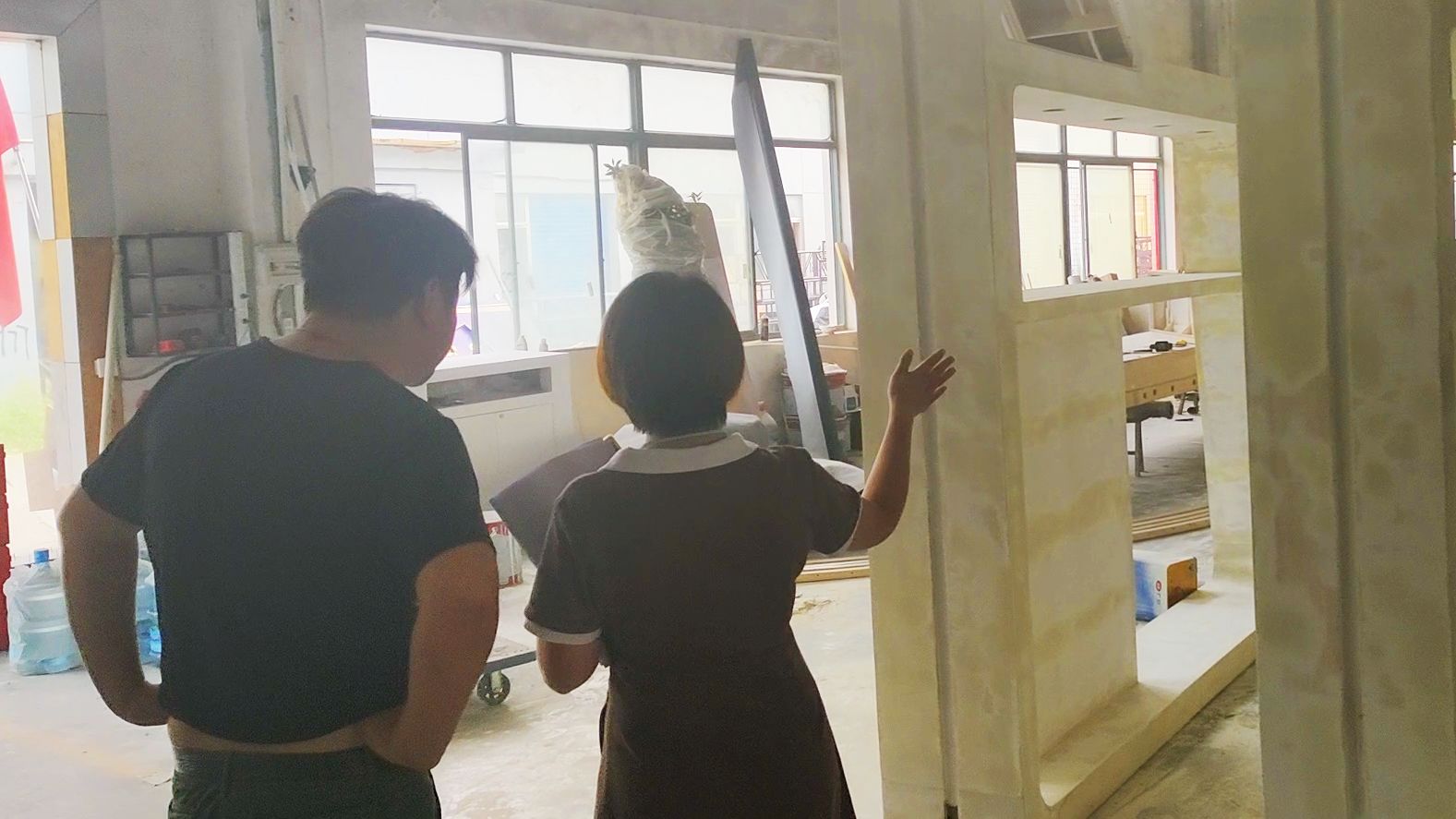 Carol在工廠檢查展臺(tái)預(yù)搭結(jié)構(gòu)情況