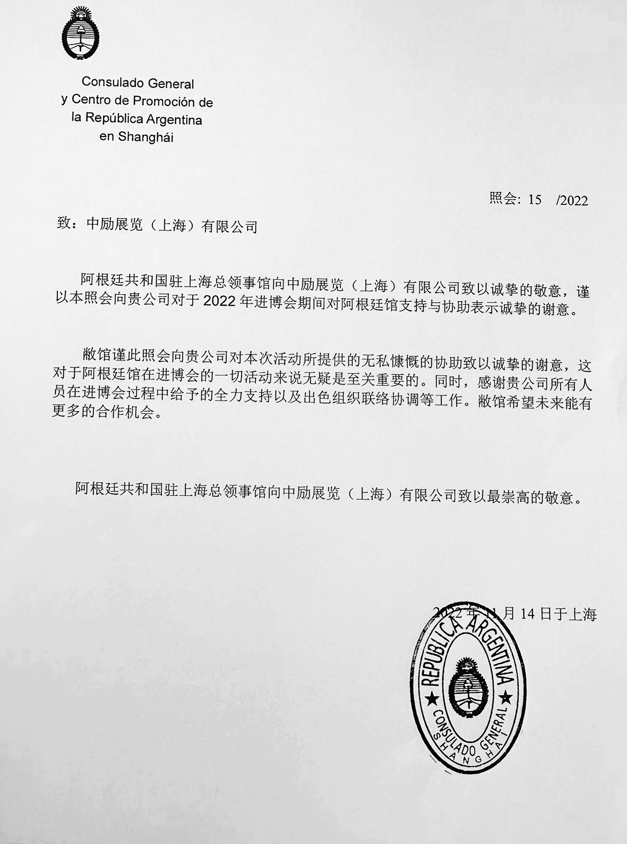 進(jìn)博會感謝信