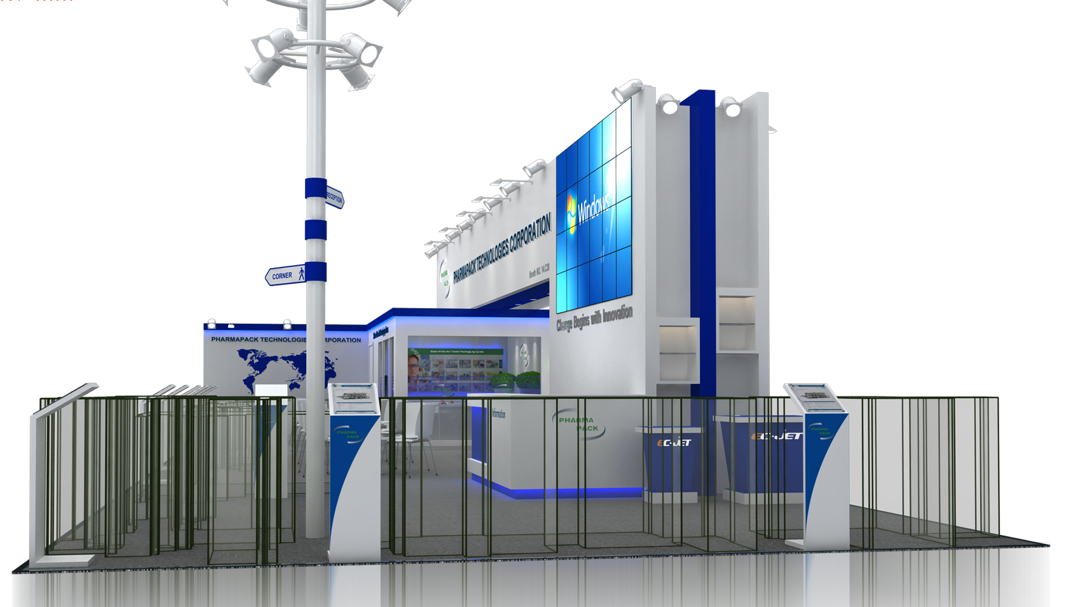 琺瑪珈集團(tuán)自2002年成立至今,致力于智能包裝及標(biāo)識設(shè)備的研發(fā)、制造、銷售及整體配套服務(wù)。公司擁有“Pharmapack”和“EC-JET”兩大品牌。 “Pharmapack”專注于智能包裝整線生產(chǎn)系統(tǒng)的研發(fā)、制造及集成,產(chǎn)品系列包括數(shù)粒智能包裝生產(chǎn)線、燈檢智能包裝生產(chǎn)線、軟包裝智能生產(chǎn)線及其它整線配套單機(jī)設(shè)備;“EC-JET”專注于標(biāo)識設(shè)備的研發(fā)、制造、銷售及服務(wù),產(chǎn)品系列包括小字符噴碼機(jī)、大字符噴碼機(jī)、激光噴碼機(jī)、高解析噴碼機(jī)及相關(guān)工業(yè)耗材。公司的產(chǎn)品廣泛應(yīng)用于制藥、食品、飲料、糖果、化妝品及電子產(chǎn)品等行業(yè)。這次參展的琺瑪珈用流暢優(yōu)美的展臺設(shè)計線條吸引了眾多觀眾駐足,中勵展覽資深展臺設(shè)計師為其打造的科技藍(lán)色調(diào),也讓琺瑪珈的產(chǎn)品更顯科技感和專業(yè)度。