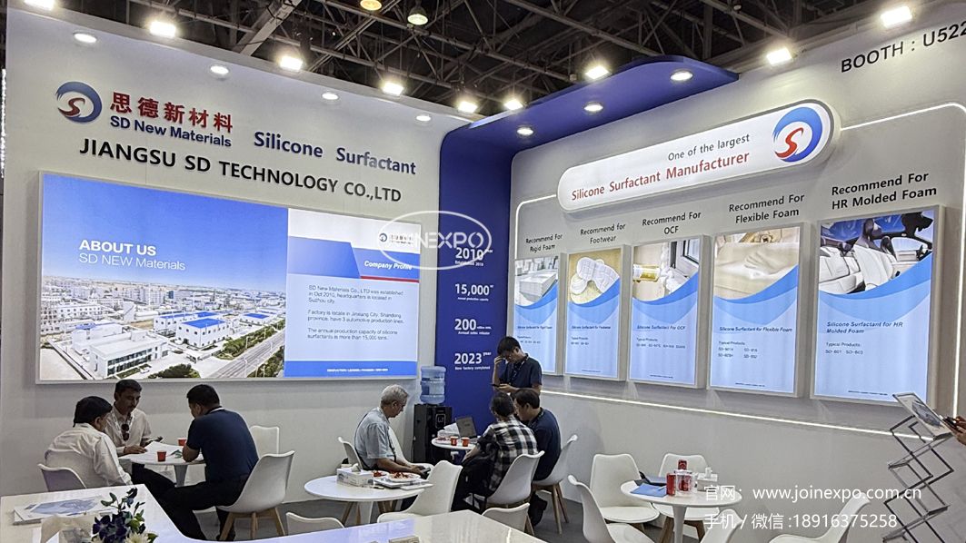 制品展區(qū)涵蓋聚氨酯泡沫(軟/硬)、聚氨酯彈性體、聚氨酯鞋底原液、組合料、聚氨酯革用樹脂、聚氨酯彈性纖維(氨綸)、聚氨酯粘合劑、密封膠等多種產(chǎn)品。