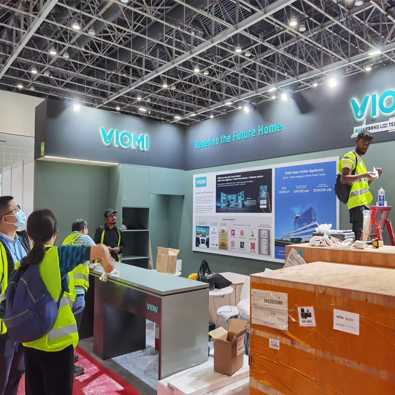 中國 500 價值品牌科技企業(yè)云米中國(迪拜)貿(mào)易博覽會展臺搭建中……