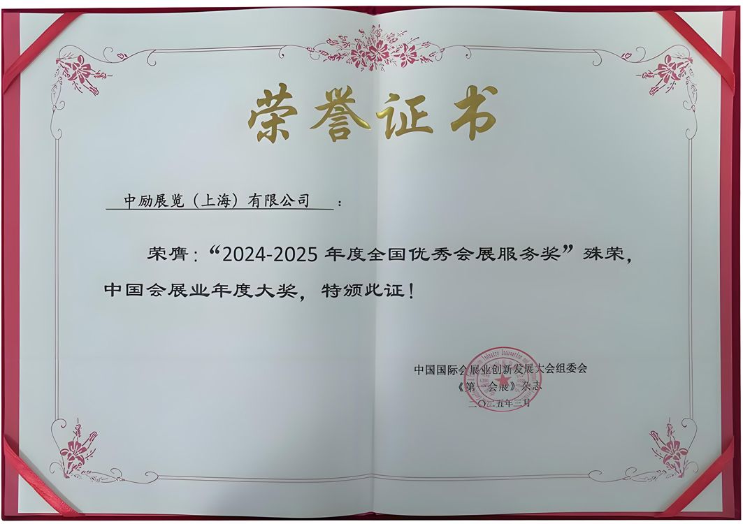 ?中勵展覽榮獲2024-2025年度全國優(yōu)秀會展服務獎?