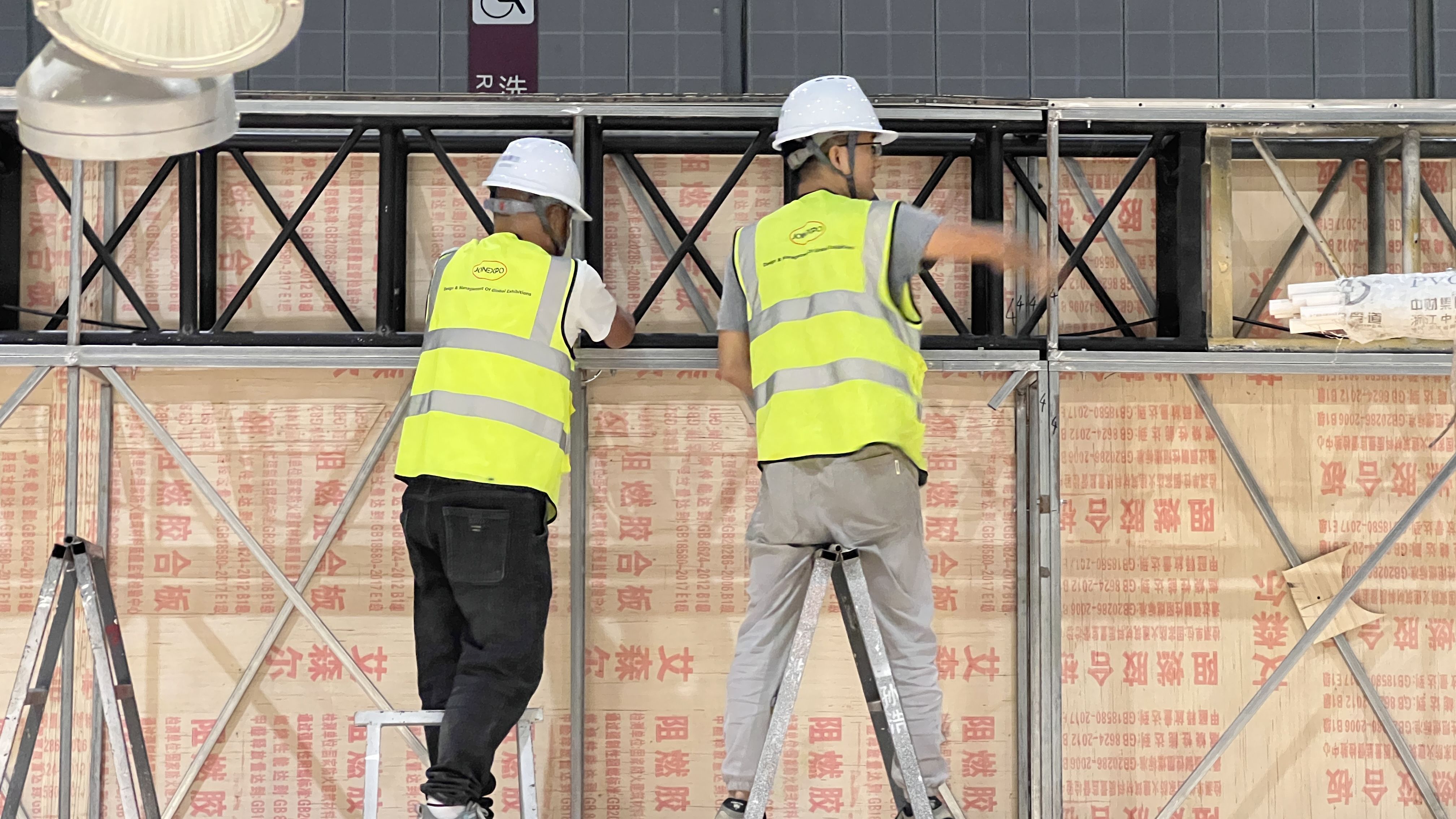 中勵展覽的工作人員們都在全力以赴,不辜負客戶的委托,每一位施工人員都認真負責地完成著展臺的搭建工作。