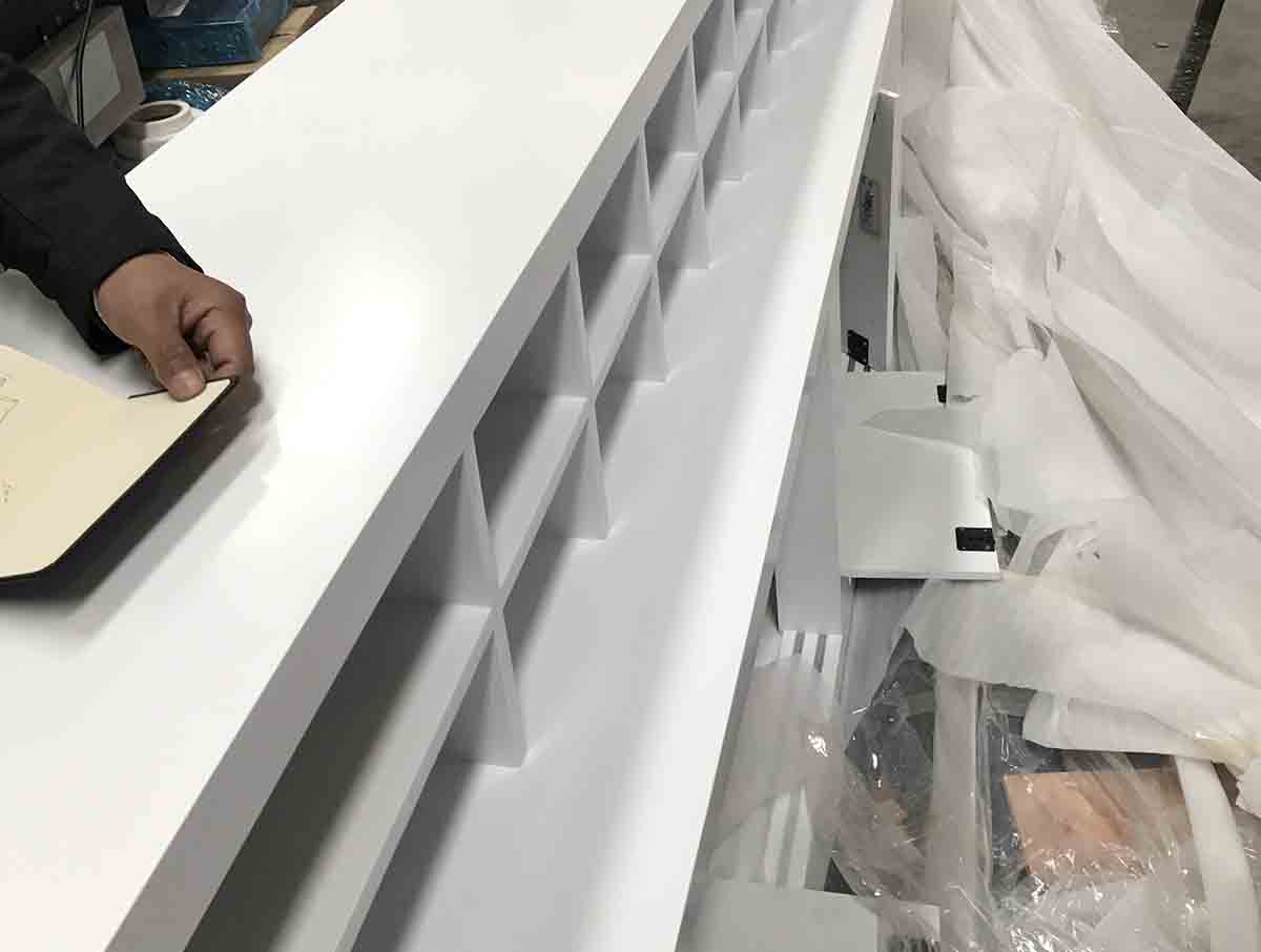 加工制作各區(qū)域性結(jié)構(gòu),打磨批灰并配置表面材質(zhì)面板